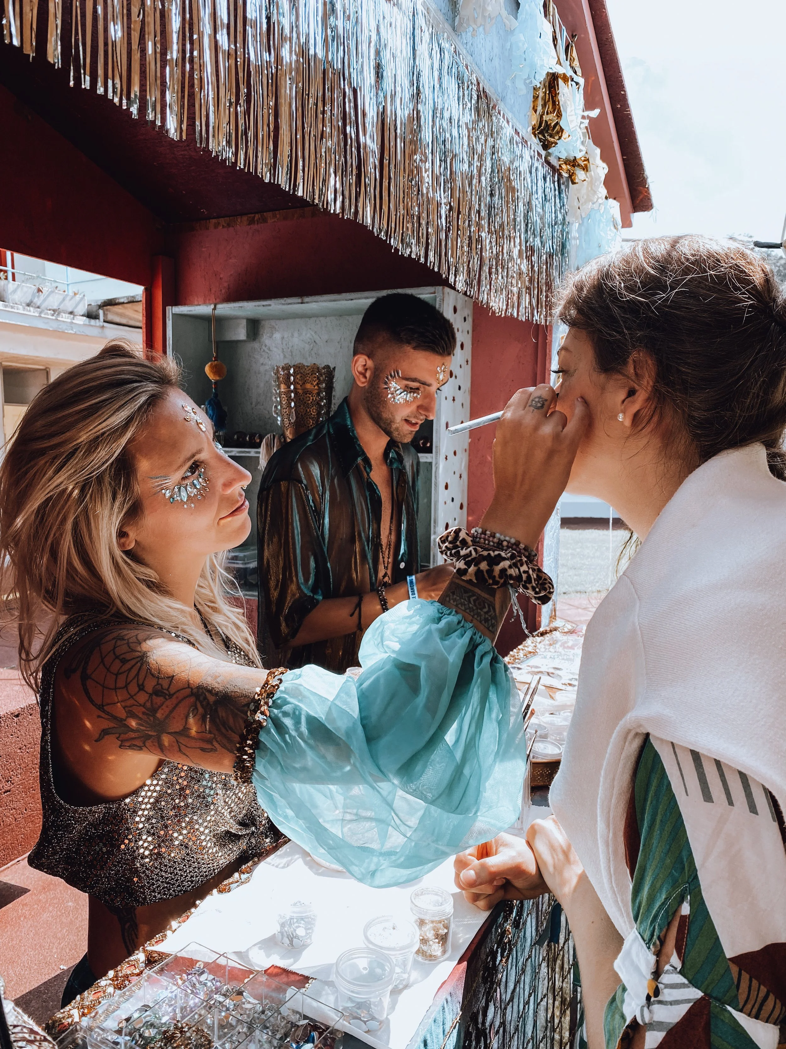 Als Make-up Artist mit einer Leidenschaft für Glitzer und Face Painting habe ich mich darauf spezialisiert, Menschen auf verschiedenen Festivals in einzigartige Kunstwerke zu verwandeln. Mein Ziel ist es, die individuelle Schönheit jedes Einzelnen hervorzuheben und gleichzeitig eine unvergessliche Erfahrung zu schaffen.